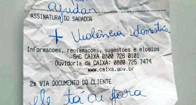 Un joven que trabaja en un banco de Brasil se llevó una gran sorpresa al leer un mensaje que una cliente había escrito en un recibo. La mujer escribió “¿Me puede ayudar?” y agregó que sufría de “violencia doméstica”.