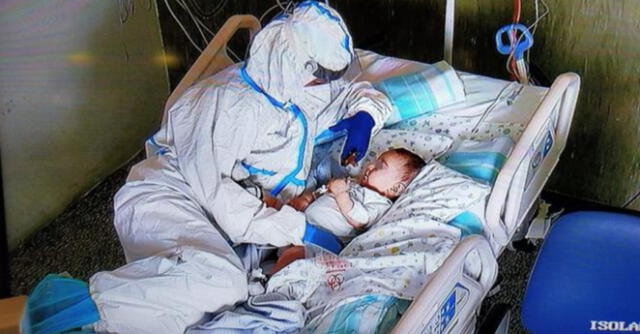 Matteo Maurizio Pinti, un menor de 7 meses, cuya vida estaba en riesgo fue animado a seguir luchando contra el virus por una sanitaria que vestía un traje especial para evitar un contacto directo.