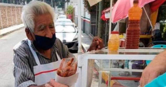 Este es el caso de don Jerónimo que se hizo conocido a través de las redes sociales gracias a sus clientes quienes publicaron una fotografía para que más personas se acerquen a su puesto de churros, papas fritas y frutas a comprarle.