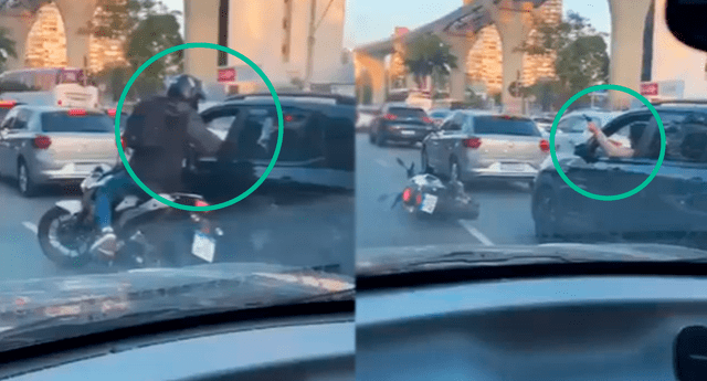 En la grabación se observa al delincuente forcejeando con el conductor a través de la ventana delantera del vehículo. A pesar del intento de robo, el automovilista logró arrebatarle el arma y, segundos después, cuando el ladrón intentaba huir en su motocicleta, abrió fuego desde el interior del auto.