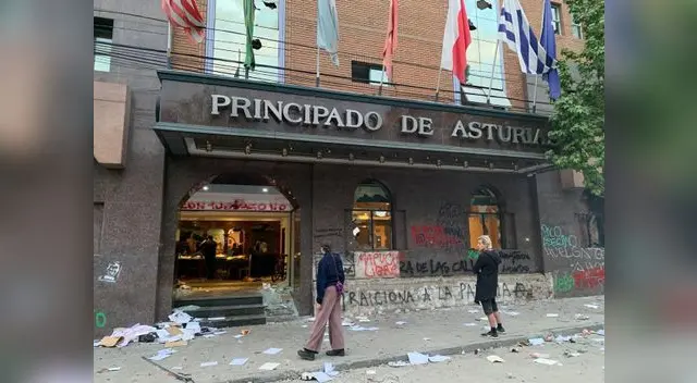 Según reportó el portal web Bio Bio Chile, el hotel atacado fue el Principado de Asturias, ubicado en la comuna de Providencia, un sector cercano de la Plaza Italia, en la capital del país sureño. Aquí, los protestantes no solamente acabaron con el interior, sino también habrían provocado un incendio al exterior del establecimiento.