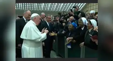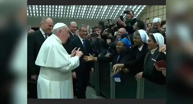 El sumo pontífice le afirmó que le daría un beso si ella estaba tranquila y no lo mordía. Ante la respuesta positiva de la monja él se acercó para abrazarla. Este suceso se dio después de la mala reacción que tuvo Francisco contra una mujer que bruscamente le tomó la mano y lo jaló hacia ella.