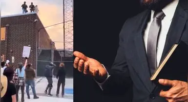 En las imágenes que fueron captadas el pasado 7 de octubre, se logra ver a tres agentes enmascarados y fuertemente armados con equipo táctico parados en lo alto de un edificio apuntando a los manifestantes. En el video aparece Davis Black con su vestimenta habitual extendiendo los brazos.