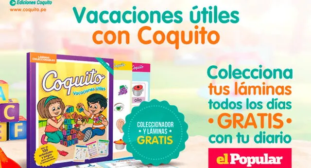 ¡Atención! Desde el lunes 10 de enero podrás encontrar GRATIS con el diario El Popular y diario La República las láminas de “Vacaciones útiles con Coquito”.