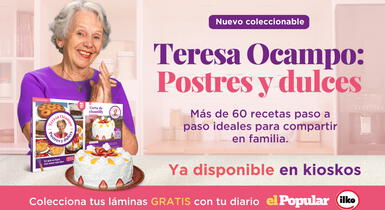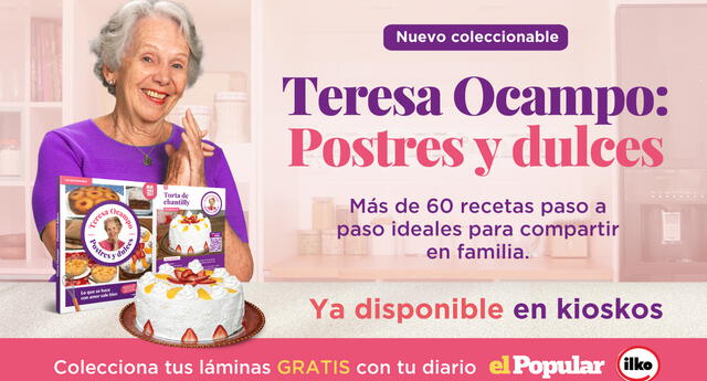 ¡Los mejores momentos en familia se disfrutan compartiendo un postre! Es por ello que tu diario, El Popular, te trae un nuevo coleccionable de láminas con más de 60 recetas de postres y dulces de Teresa Ocampo. Son preparaciones caseras, variadas y explicadas paso a paso, ideales para compartir en familia. Cada domingo, el lector podrá encontrar la receta de una torta. Por lo que, podrás preparar paso a paso unos ricos postres, tortas y dulces en tu propia casa y así compartirlo con todos los integrantes de tu hogar.