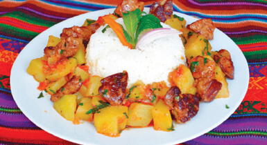 Sancocha el hígado de pollo y pica en cuadraditos. Para preparar el aderezo fríe en el aceite el ajo molido, la cebolla picada en cuadraditos, el ají colorado molido, el hígado de pollo, luego agrega la hierbabuena, el caldo de hígado de pollo, las papas picadas en cubos pequeños y deja cocinar. Rectifica la sazón con la sal, vinagre y el culantro. Sirve la chanfainita.