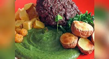 Puré de papa y espinaca con hamburguesa