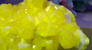 El azufre es un elemento químico de número atómico 16 y símbolo S. Es un no metal abundante con un olor característico e intenso. Tiene un color amarillento fuerte, amarronado o anaranjado y arde con llama de color azul. Es insoluble en agua. Se encuentra en forma nativa en regiones volcánicas. Contiene aminoácidos y metionina, por consiguiente, es necesario para la síntesis de proteínas presentes en todos los organismos vivos. Se usa principalmente como fertilizante pero también en la fabricación de pólvora, laxantes, cerillas e insecticidas.