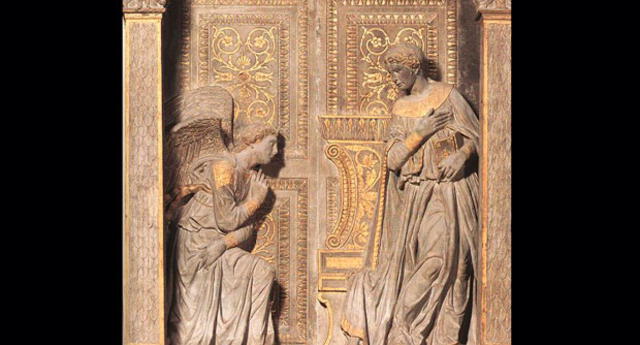 La Anunciación, obra hecha por el gran pintor Donatello, muestra la aparición del ángel frente a la Virgen para decirle que será la madre de Jesús.