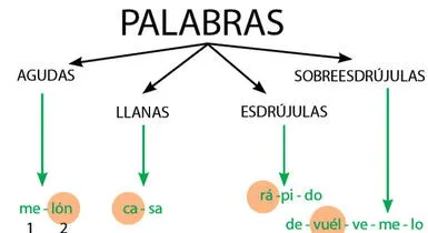 En el español las palabras pueden ser agudas, graves o esdrújulas. Todo depende de la posición de la sílaba tónica (con mayor fuerza de voz).