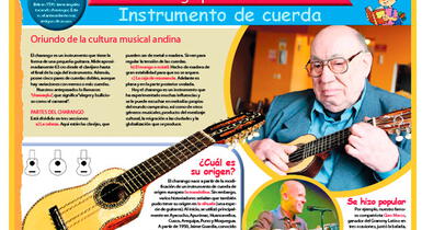 El charango es un instrumento que tiene la forma de una pequeña guitarra. Mide aproximadamente 63 cm desde el clavijero hasta el final de la caja del instrumento. Además, posee cinco pares de cuerdas dobles, aunque hay variaciones con menos o más cuerdas.Nuestros antepasados lo llamaron “chawaqku”, que significa “alegre y bullicioso como el carnaval”.PARTES DEL CHARANGOEstá dividido en tres secciones:a) La cabeza. Aquí están las clavijas, que pueden ser de metal o madera. Sirven para regular la tensión de las cuerdas.b) El mango o mástil. Hecho de madera de gran estabilidad para que no se arquee.c) La caja de resonancia. Adelante es plana y en la parte posterior ovalada.Hoy el charango es un instrumento que ha experimentado muchas influencias y se le puede escuchar en melodías propias del mundo campesino, así como de otros géneros musicales, producto del mestizaje cultural, la migración a las ciudades y la globalización que se produce.