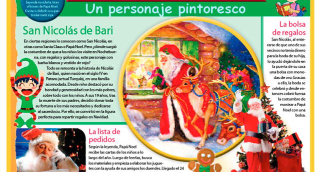 En ciertas regiones lo conocen como San Nicolás, en otras como Santa Claus o Papá Noel. Pero ¿dónde surgió la costumbre de que a los niños los visite en Nochebuena, con regalos y golosinas, este personaje con barba blanca y vestido de rojo?Todo se remonta a la historia de Nicolás de Bari, quien nació en el siglo IV en Patara (actual Turquía), en una familia acomodada. Desde niño destacó por su bondad y generosidad con los más pobres, sobre todo con los niños. A sus 19 años, tras la muerte de sus padres, decidió donar toda su fortuna a los más necesitados y dedicarse al sacerdocio. Por ello, se convirtió en la figura perfecta para repartir regalos en Navidad.