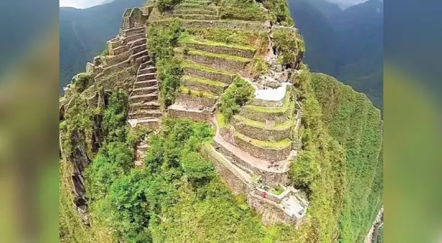 Detrás de Machu Picchu aparece la gran y famosa montaña Huayna Picchu (montaña joven), que ha sido colocada en muchas fotografías de la Maravilla del Mundo.