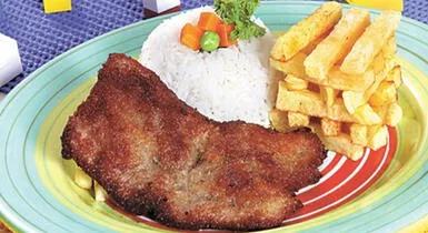 Ingredientes:- Bistecs cortados delgados.- Pan tostado molido.- Sal, pimienta, aceite y vinagre.- 2 cebollas cortadas en juliana.- 1 cucharadita de ajos molidos.- 2 tomates picados.- 1 ají cortado en tiras delgadas.- 2 cucharadas de perejil.Preparación:Sazonar los bistecs con sal y pimienta. Colocar el pan encima. En una sartén freir las carnes. Retirarlas.
