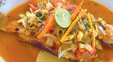 Ingredientes1 3/4 taza de frijoles.1 1/2 kilo de pescado.1 2 plátanos maduros.1 3/4 taza de queso fresco.1 1 cebolla y 1 tomate.1 1 ají amarillo fresco.1 1 cda. de ají colorado.12 cdas. de culantro.1 Aceite, pimienta y sal.