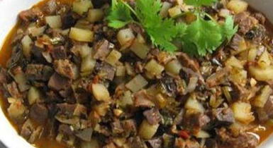 Añade la sangrecita frita, adiciona la hierbabuena y el orégano. Sirve con arroz y mote.