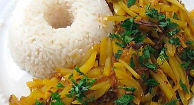 Condimenta la mollejita con pimienta, comino y sal y fríela. Luego mézclala con el olluco y agrega perejil y hierbabuena picada. Cocina por unos minutos. Sirve con arroz.p