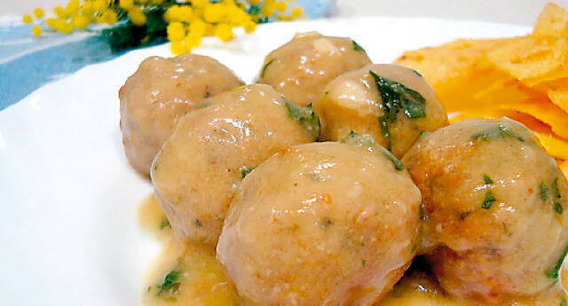 Cocina la sangrecita con sal, córtala en cuadritos. Coloca la sangrecita en un tazón, adiciona huevo batido, perejil picado y sal. Mezcla y forma bolitas medianas, pasa por harina de trigo y fríe por ambos lados. Prepara un aderezo con aceite, ajos, cebolla cortada en cuadritos, ají y dora, después agrega arvejas, culantro licuado, albóndigas y zanahoria en rodajas. Cocina y sirve con arroz graneado.