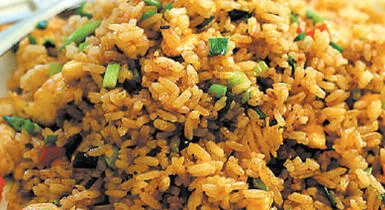 Ingredientes1 1/2 kg de sangrecita de pollo.1 2 1/2 taza de quinua.1 3 cabezas de cebolla china.1 1 pimiento mediano.1 1 diente de ajo.1 1 trozo pequeño de kion.1 2 huevos medianos.1 5 cdas. de aceite vegetal.1 Sillao y sal al gusto.PreparaciónSancocha la quinua. Aparte cocina la sangre de pollo con ajo y hierbabuena. Córtala en trozos pequeños y aderézala con sal y sillao. Aparte fríe los huevos batidos y pícalos en cuadritos. Resérvalos en un plato. Haz un aderezo con kion molido, pimiento y cebolla china picada en cuadritos y la sangre de pollo. Al último incorpora la quinua, el sillao y el huevo. Prueba que la sal esté en su punto y listo.