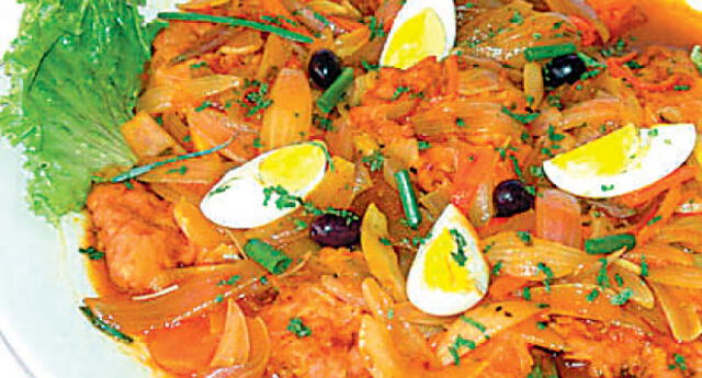Ingredientes1 3/4 kg de pescado.1 1/2 kg de camote.1 1/3 taza de vinagre tinto.1 2 huevos y 2 cebollas.1 1/2 taza de harina de trigo.1 4 cdas. de ají amarillo.1 2 unidades de ají verde.1 1/2 taza de aceite vegetal.1 4 aceitunas.1 Ajo molido, pimienta y sal.PreparaciónSancocha los camotes y huevos. Lava el pescado, córtalo y sazónalo con ajos, pimienta y sal. Apánalo con harina de trigo y fríelo. Corta la cebolla en tiras, agrega agua y hiérvela por cinco minutos. Aparte dora el ají amarillo, ajos, cebolla, el ají verde en tiras, pimienta, vinagre tinto y sal.Déjalo hervir y luego añade el pescado. Sírvelo con camote, huevo y aceituna.