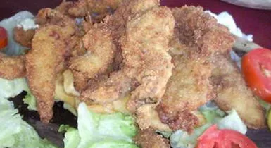 Condimenta la huevera de pescado y la mixtura de mariscos con sal, pimienta y ajo. Pásala por huevo batido, apánala con harina de maíz, pan rallado y fríela en aceite.