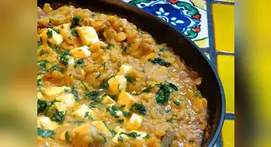 Rectifica la sazón y agrega el queso fresco en cuadritos, la leche, el perejil y huacatay picado. Remueve.