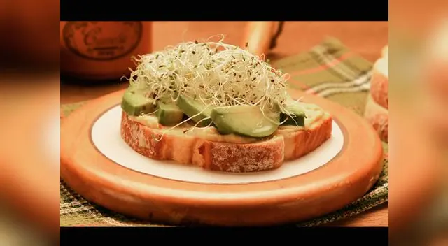 Preparación: Untar el hummus sobre la tajada de pan. Cortar la palta en láminas delgadas, aderezar con gotitas de limón, sal y pimienta, y colocar sobre el hummus. Decorar con el germinado y servir.