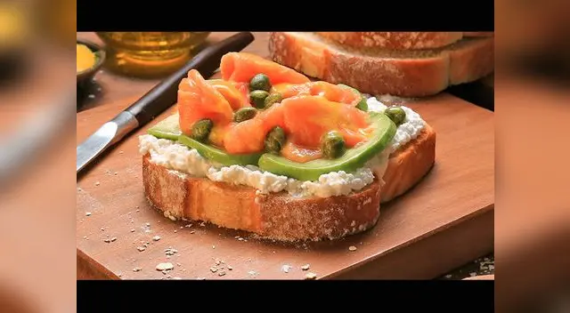 Preparación: Combinar el aceite de oliva con la mostaza, limón, alcaparras, sal y pimienta. Tostar la rebanada de pan. Sobre la tostada, colocar el queso cottage, las láminas de palta y al final las láminas de salmón. Hacer una vinagreta con el aceite de oliva, la mostaza, el jugo de limón y las alcaparras. Aderezar el pan y servir.