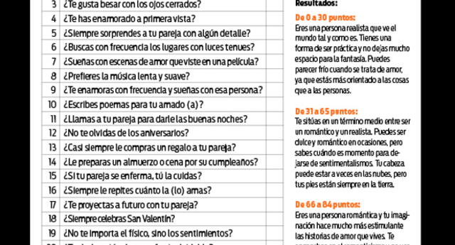 Test de los domingos: Descubre cuán romántica (o) eres