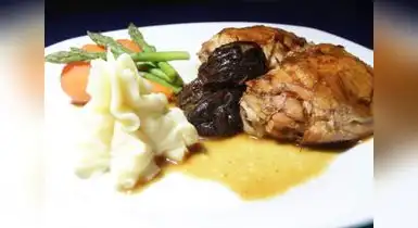 Cuando el pollo esté cocido, retíralo y reserva. Agrega a dicho aderezo los guindones y hierve 10 minutos. Incorpora la canela en polvo y la miel. Mueve bien, verifica la sazón, echa el pollo y sirve.