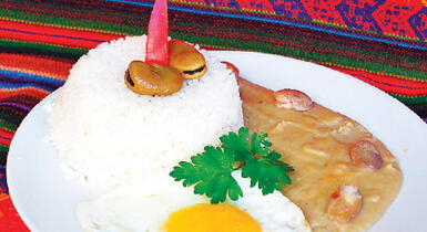 INGREDIENTES1 1/2 taza de arroz.1/4 kg de habas secas.4 huevos y 1 cebolla.1/4 taza de leche.1/2 taza de aceite.5 dientes de ajos.Sal al gusto.
