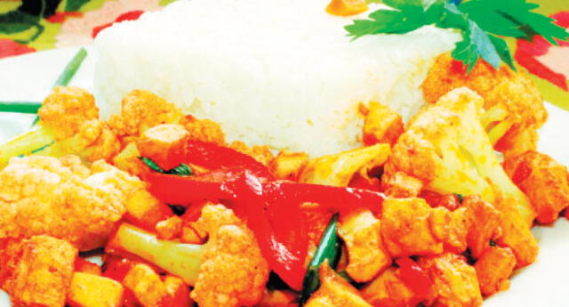 INGREDIENTES1 y 1/2 taza de arroz.1/2 kg de pota. 1/2 kg. de papa.1/2 kg de coliflor.1/4 taza de aceite vegetal.1 cebolla.1 tomate.1 diente de ajo.Sal al gusto.