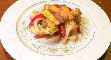 Lava y troza la coliflor y cocínala en agua con sal 10 minutos. Corta cebolla, tomate y carne en tiras. Salpimentar. En una sartén muy caliente agrega un poco de aceite y dora la carne, agrega cebolla, tomate y coliflor por un minuto, salteando la sartén para que no se quemen los insumos. Acompaña con arroz blanco.Crédito: Chef Eduardo Domínguez teléfono: 99893-4202.
