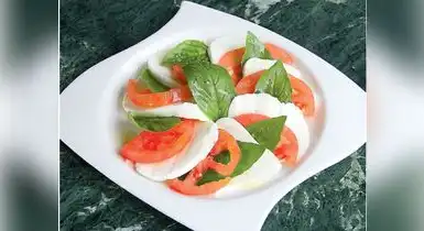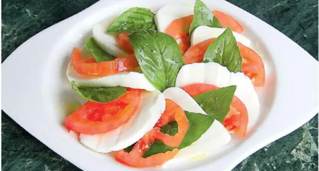 Lava y pela el tomate para luego cortarlo en rodajas. Escurre el queso mozzarella fresco y córtalo en láminas. Lava y desinfecta las hojas de albahaca fresca. Sobre el plato arma e intercala las lonjas de tomate, queso mozzarella y hojas de albahaca. Echa aceite de oliva y sal al gusto. Como ingrediente opcional, añade pimienta.