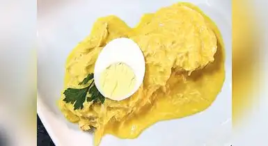 INGREDIENTES500 gr de pechuga de pollo.Sal y pimienta al gusto.4 cucharadas de ají amarillo molido.4 tajadas de pan.½ taza de leche evaporada.1 taza de agua.50 gr de nueces picadas.50 gr de queso parmesano rallado.1 cebolla.Ajo molido y aceite.