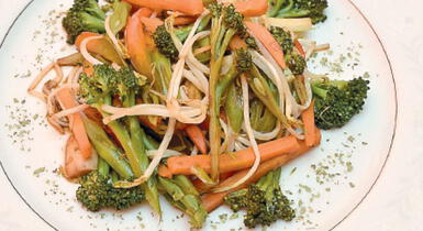 Calienta la sartén, agrega la mantequilla, incorpora el frejol chino con la zanahoria cortada en pequeños bastones. Saltea por 20 segundos, añade los pimentones, cebolla y zapallo italiano picado en tiras. Echa el sillao y remueve por 30 segundos. Crédito: Chef Eduardo Domínguez.Teléfono: 99893-4202.