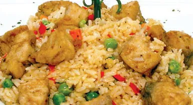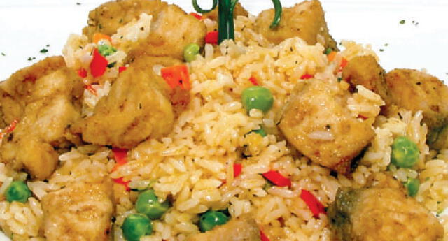 INGREDIENTES 1 ¾ taza de arroz. ¾ kg de pescado. 2 huevos medianos. 4 cabezas de cebolla china. 1 pimiento mediano. ½ tz. de aceite vegetal. ¼ tz. de harina de trigo. kion y sillao. sal yodada al gusto.PREPARACIÓNCortar el pescado en cuadraditos pequeños, sazonar con sal, luego envolverlos con harina y freír en el aceite vegetal bien caliente.Aderezar el arroz con kion cortado en tiras delgadas. En otro recipiente debe batir los huevos y sazonar con sal, después de freírlos en la sartén, cortar en cuadraditos cuando enfríe un poco. En una olla, mezclar la cebolla china en cuadraditos, el pescado, el huevo y el arroz; sazonar con sillao y mezclar uniformemente. Listo para servir.Receta del Instituto Nacional de Salud.