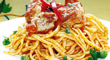 Tallarines con salsa y pescado