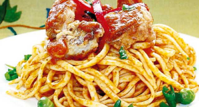 Limpiar y lavar el pescado, cortar en trozos medianos y sazonar con sal y freír. Freír tomates y cebollas cortadas en cuadraditos, zanahorias ralladas, hongo y laurel. Licuar, agregar los trozos de pescado y cocinar. Servir los tallarines con salsa de pescado.