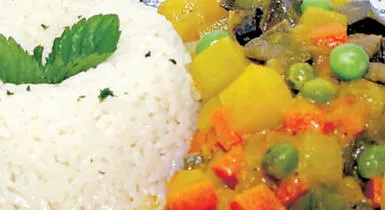 pimienta, palillo y sal yodada. Añade el bofe, la arveja, la zanahoria y las papas cortadas en cuadraditos pequeños y cocinar; luego agrega el jugo de limón y la hierbabuena. Sirve con arroz graneado.