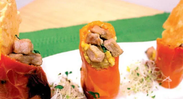 INGREDIENTES16 ajíes amarillos grandes.1 cebolla picada finamente.3 dientes de ajos picados.2 cdas. de ají amarillo molido.2 huevos.400 gr. de carne de cerdo picada.2 tz. de arroz integral.1 cda. de perejil picado.½ tz. de caldo de pollo.Sal y pimienta al gusto.