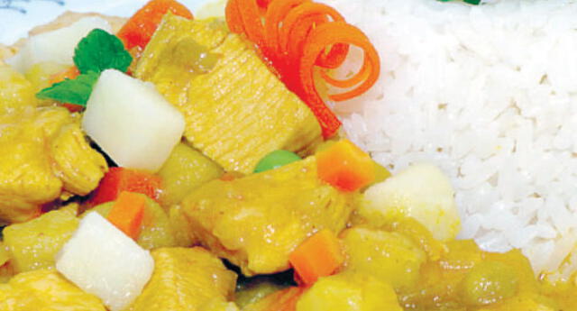 INGREDIENTES½ kg de pollo.½ kg de papa blanca.1 ¾ tazas de arroz.¼ taza de aceite vegetal.1 cebolla pequeña.1 zanahoria mediana.½ taza de arveja fresca verde.Ajos molido.Ají amarillo molido.Pimienta, palillo, hierba buena y sal.