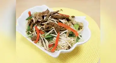 INGREDIENTES500 gr de tallarines chinos.400 gr de carne de lomo.1 cda. de kion picado.½ pimiento en juliana.½ tz. de col china picada.½ tz. de frejolito chino.½ tz. de holantao.½ tz. de cebolla china.1 cubito de caldo de carne.1 cdta. de chuño.Aceite de ajonjolí.Sillao.Cubito de carne.
