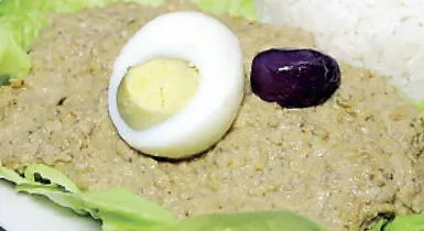 Remojar el pan con la leche y luego licuarlo. En una olla dorar la cebolla, los ajos, el ají mirasol y el ají amarillo por 10 minutos aproximadamente. Añadir el pan licuado y sazonar con sal, pimienta y nuez moscada. Agregar caldo del pollo si fuera necesario. Dejar cocinar por 10 minutos y sumar el atún. Por último poner queso parmesano y pecanas picadas.