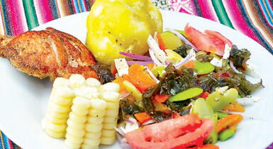 Sancocha la papa, el choclo, las habas y la zanahoria, pica en larguitos. Remoja el cochayuyo con agua caliente y lava en un colador con abundante agua, luego pasarlo por agua hervida por un par de minutos, colar y dejar enfriar. Adereza el pollo con sal, comino, ajo molido y freír. Pica la cebolla al estilo juliana, lava y mezcla con las habas, la zanahoria, el cochayuyo y queso picado. Se adereza con sal, limón y vinagre al gusto. Sirve el soltero acompañado con papa sancochada, choclo y pollo frito.