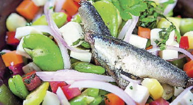 200 gr de anchoveta.1 cebolla.2 tomates.1/2 kg de habas.300 g de zanahoria.2 choclos.150 g de queso fresco.Limón.Perejil.Aceite.Sal y pimienta al gusto.