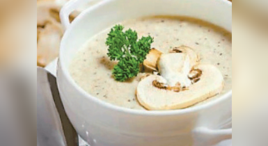 Derretir la mantequilla en una olla a fuego medio. Dorar el ajo y la cebolla durante cinco minutos. Agregar los champiñones. Remover y cocinar durante unos minutos más, hasta que los champiñones estén tiernos. Agregar el caldo de pollo, espolvorear la harina y mezclar. Dejar cocinar por 15 minutos. Agregar la leche, la crema de leche y remover. Cocinar a fuego lento hasta que la crema espese. Acompañar con pan tostado.