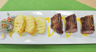 Precalentar la parrilla, a temperatura, colocar la carne y sazonar bajo el calor. Agregar las hierbas, previamente molidas, a cada lado al momento de dar la vuelta a la carne. La cocción no excede de los 15 a 20 minutos, si desea, puede aplicar un chorrito de vino blanco durante la cocción.