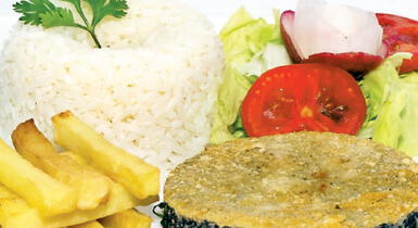 Cocina la sangrecita en agua con hierbabuena. Luego pícala y desmenúzala en un recipiente. Sazona con sal, ajos, pimienta; agrega los huevos, la espinaca cortada en tiras delgadas, el pan rallado y mueve hasta obtener una mezcla homogénea. Haz bolitas con la masa y forma las hamburguesas, pásalas por harina y fríelas en aceite caliente. Sirve con arroz y ensalada.
