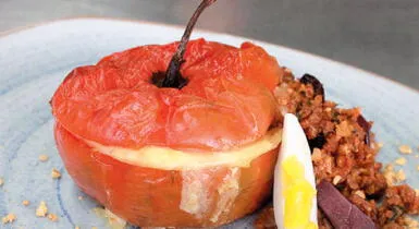 Hacer el aderezo e incorporar carne picada con perejil y huacatay. Agregar el fondo, maní, galletas, aceitunas y cocinar 5 minutos. Rellena los rocotos (cortados y hervidos) con esta salsa colocando huevo y pasas. Hacer una mezcla con queso mantecoso y leche, colocar en la superficie del rocoto con el queso paria cortado. Llevarlo al horno y cocinar 15 minutos. Servir.